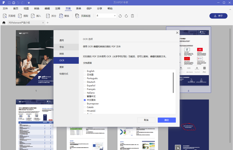 在进行OCR识别之前,有一个文档语言选项。请确保您已经选择了扫描件文档或图片中出现的所有语言。如果有简体中文,英语和法语文本,则需选择“简体中文”,“英语”和“法语”选项。